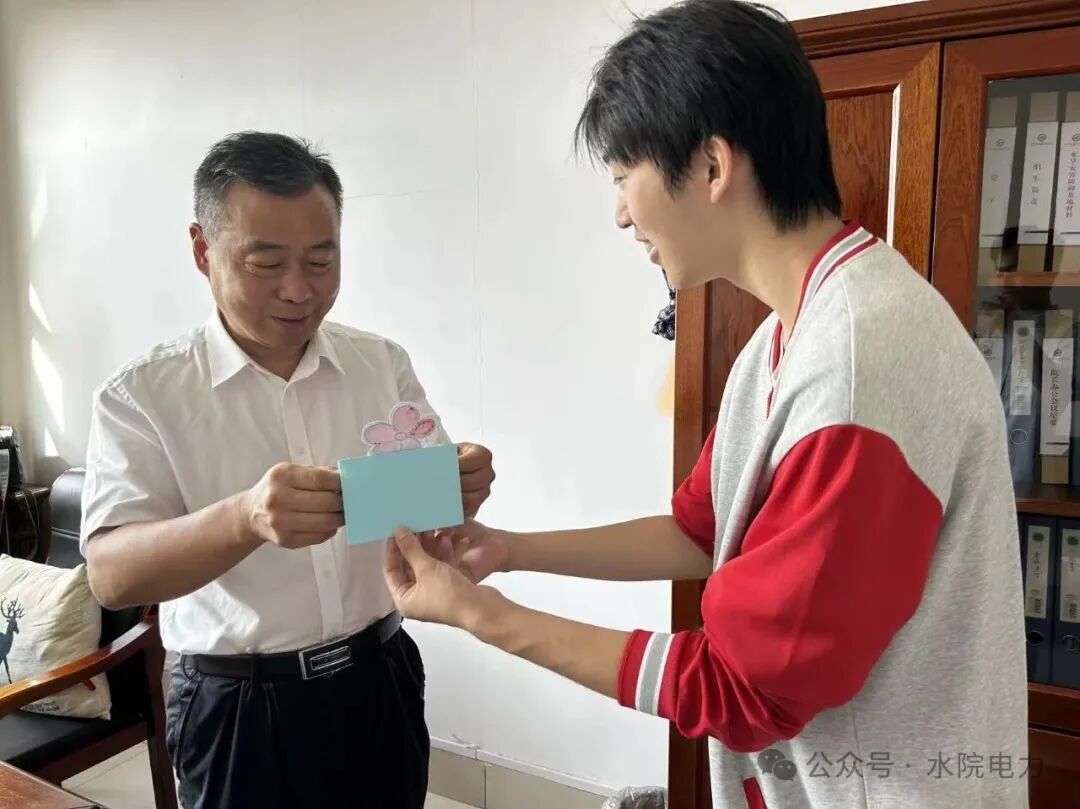 随后,同学们手捧精心准备的贺卡,来到办公室,给各位老师送去祝福,感谢他们在学习、生活上的帮助。