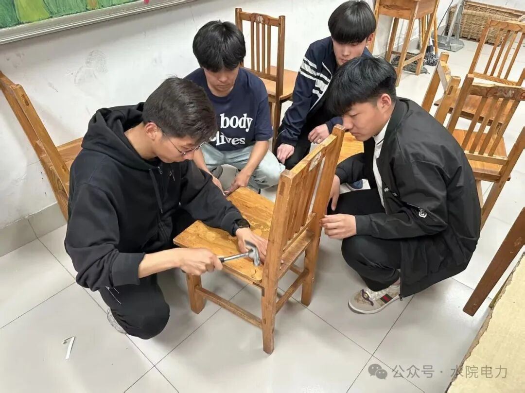为响应学院任务型晚自习号召,帮助同学们养成爱护公物习惯,近期,电力工程学院各班陆续组织同学们开展维修桌椅板凳的活动,不仅锻炼了同学们的动手能力,更培养了大家的主人翁意识。