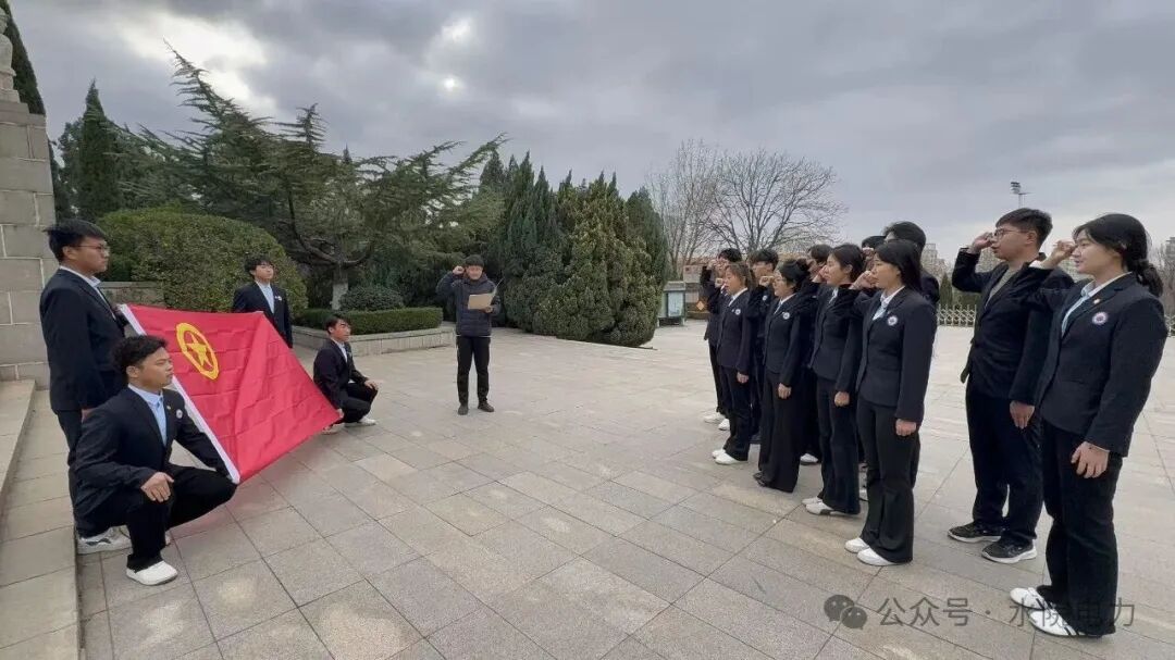 随后,大家怀着崇敬的心情来到淄川烈士陵园。在庄严肃穆的氛围中,团员代表整齐列队,向长眠于此的革命先烈敬献鲜花、鞠躬默哀,表达对英烈们的深切怀念与崇高敬意。通过缅怀仪式,同学们更加深刻地理解了今日和平与幸福的来之不易,增强了历史责任感和时代使命感。