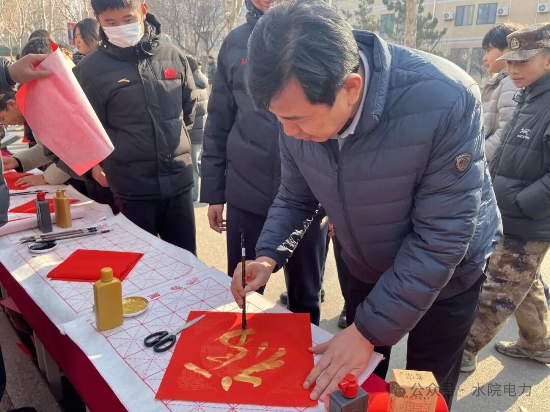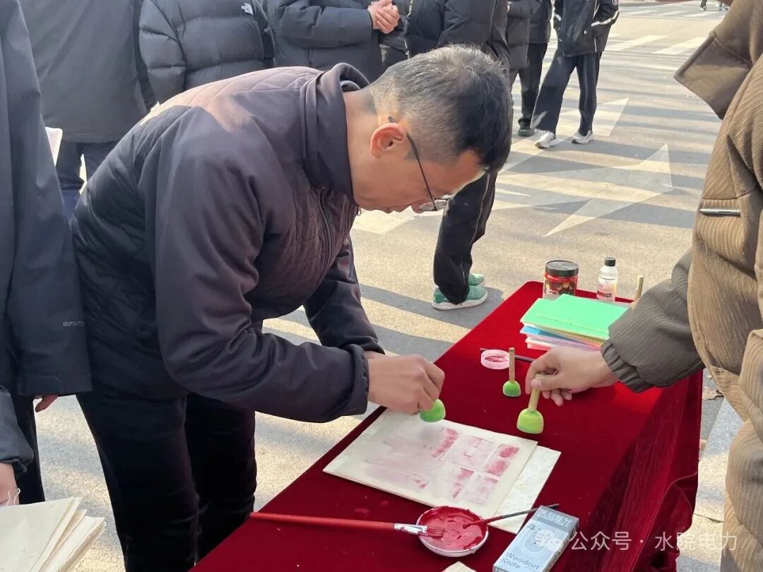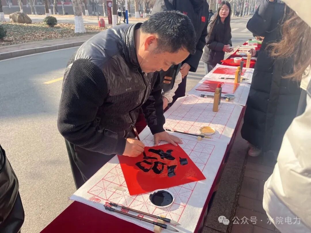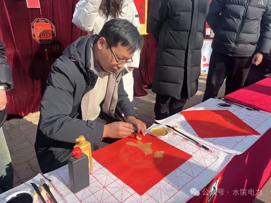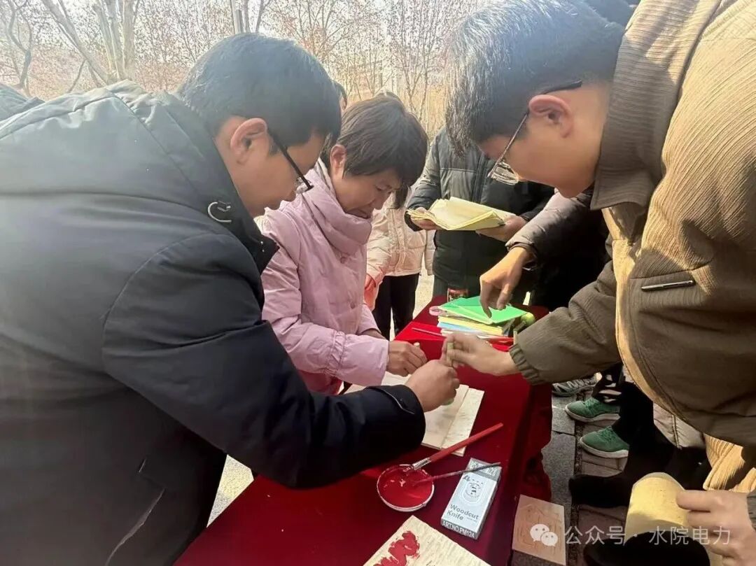 本次活动分为“参观区”与“体验区”两大板块。参观区集中展示了由电力师生共同创作的新年主题海报、非遗剪纸等作品,一幅幅色彩鲜艳、寓意吉祥的海报与精雕细琢的剪纸相映成趣,既承载着对新年的美好祝愿,也展现出师生对传统文化深刻的理解与创造力。