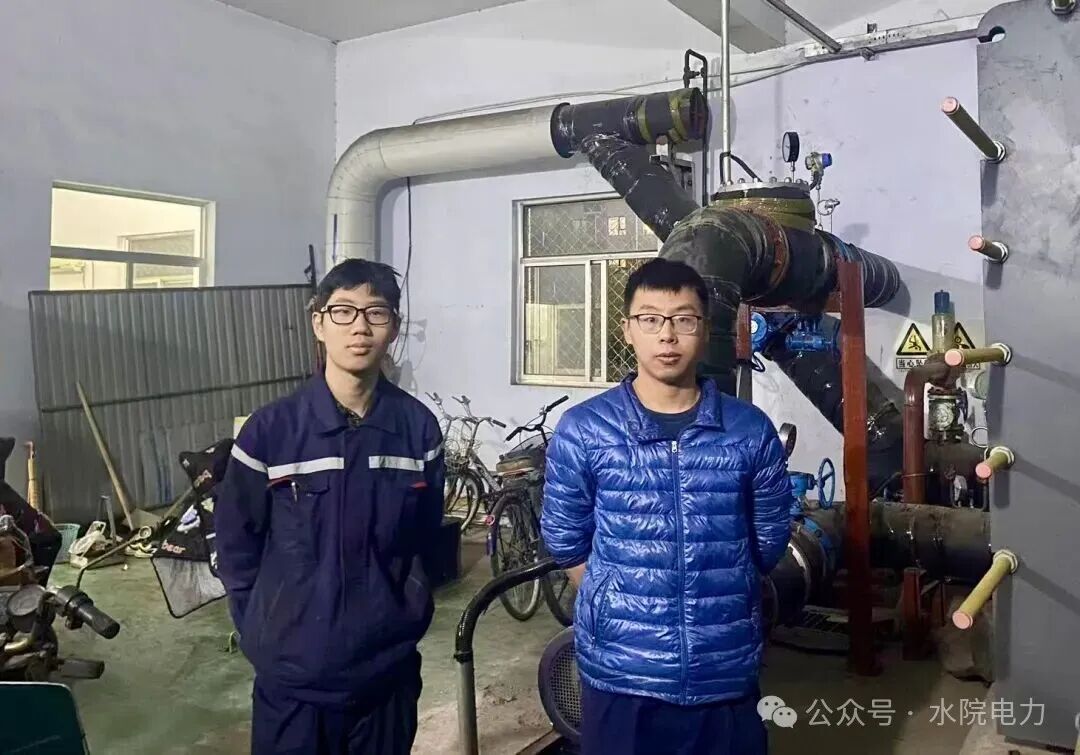 在这场供暖“保卫战”中,8位同学化身“暖流卫士”,留下了许多动人瞬间:杨镇田、李茂森深夜值守,耐心为用户解决滤网问题;常峻源、苏佳泽浩在鲁中监狱立管泄漏的危急关头,不顾衣物湿透冲锋在前,及时控制险情;孙伟杰、王祥宇心细如发,在日常巡检中精准查出多处漏水隐患;赵文盛、张家鈇在华瑞园小区抢险时,沉着果断,浑身湿透仍坚守岗位。