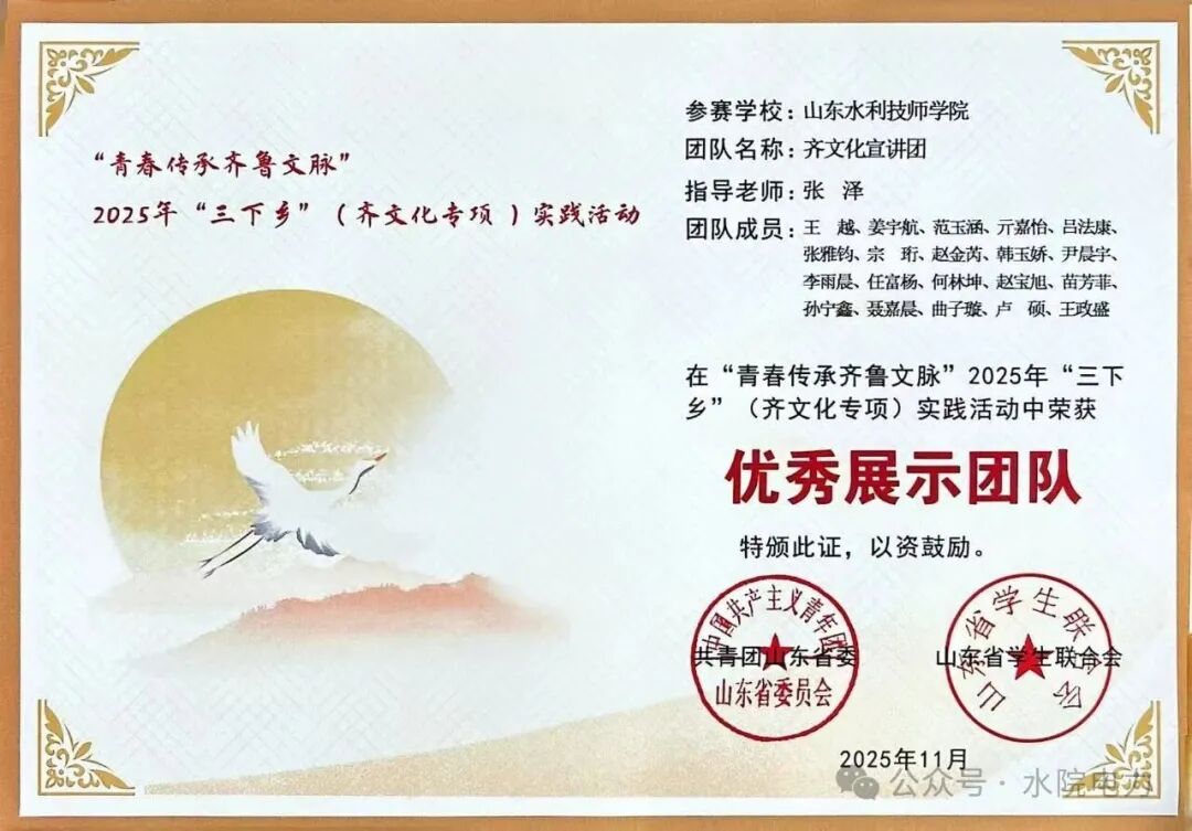 喜报!电力工程学院齐文化宣讲团荣获2025年“三下乡”(齐文化专项)优秀展示团队
