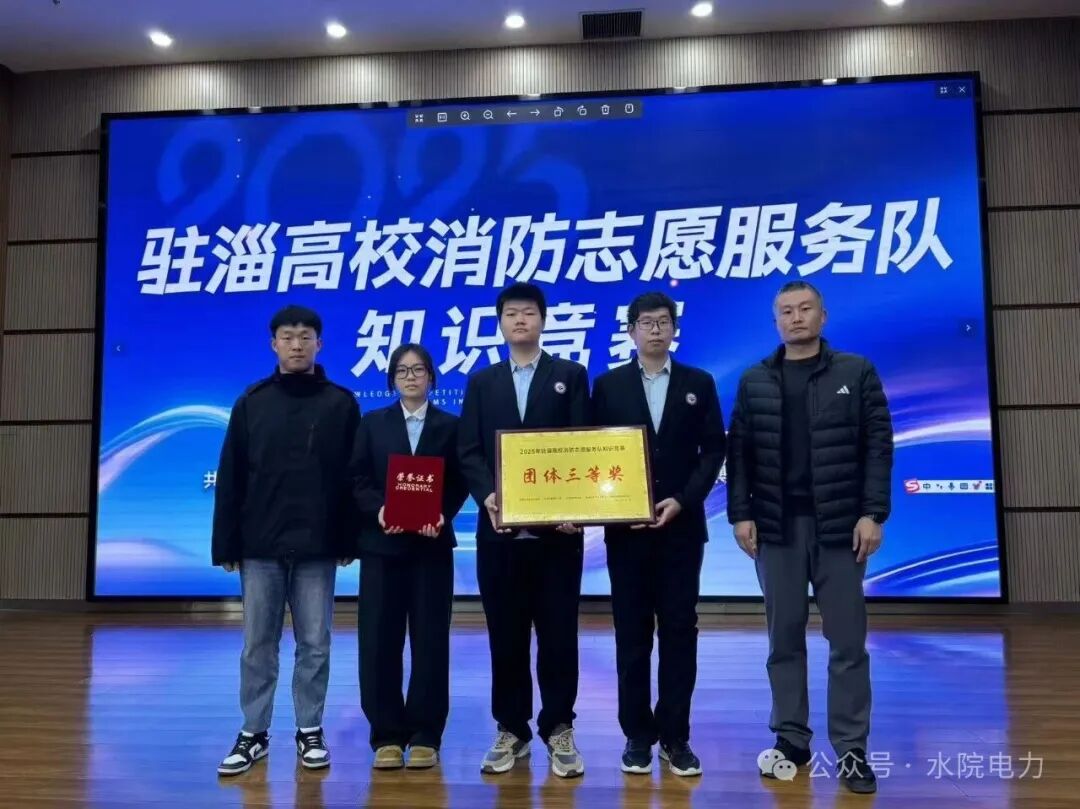 近日,在2025年驻淄高校消防志愿服务队知识竞赛中,电力工程学院代表队奋勇争先,荣获三等奖,展现了电力学子的风采。