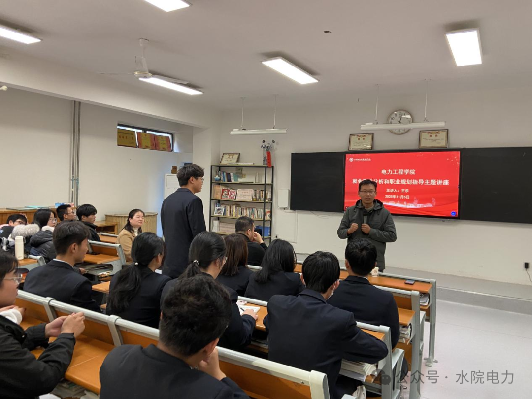 11月5日下午,电力工程学院举办创新就业讲座,特邀法国威立雅集团华北区域人力资源经理王乐先生以《就业形势分析和职业规划指导》为题作了精彩分享,他围绕当前就业形势、专业前景、职业规划等内容,结合企业工作实际生动讲解,为学生呈现了一堂“接地气”的精彩报告。