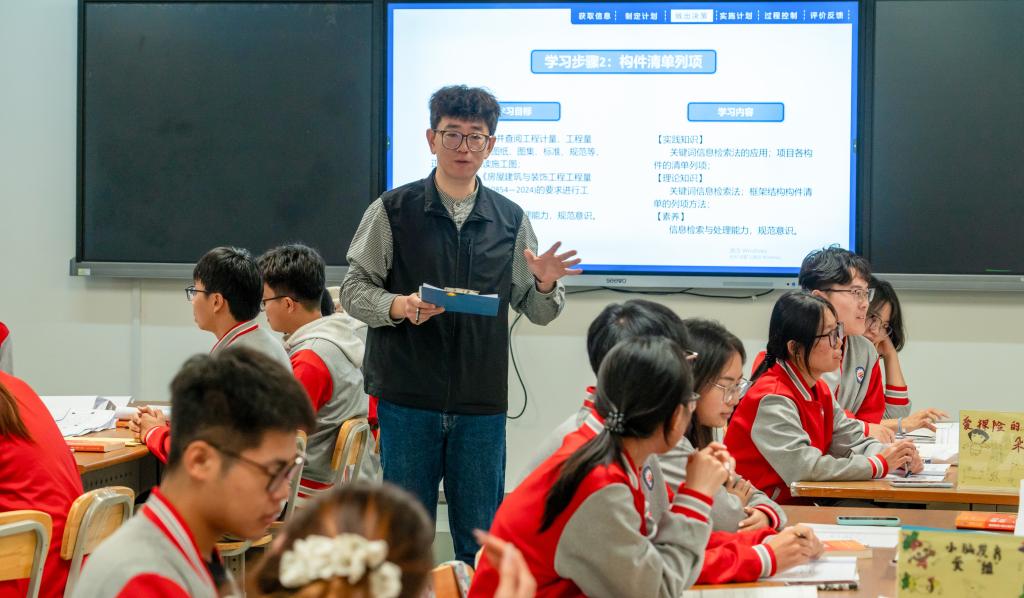 活动伊始,教师赵建翔主讲《小型项目建筑与装饰工程手工计量》工学一体化公开课,在40分钟内完整呈现课堂教学设计、组织实施等核心环节,为参会教师提供直观实践参考。特邀嘉宾全国优秀教师、广东省城市技师学院古娟妮教授,结合公开课实例,从“教学目标达成、工学融合度、学生参与度及教学资源建设”四个维度展开专业点评,提出针对性优化建议。交流研讨环节,与会教师围绕“工学一体化课堂活动设计、行动导向教学法应用、过程性考核”三大主题,分享教学实践案例、梳理现存问题、探讨改进思路,现场气氛活跃热烈。