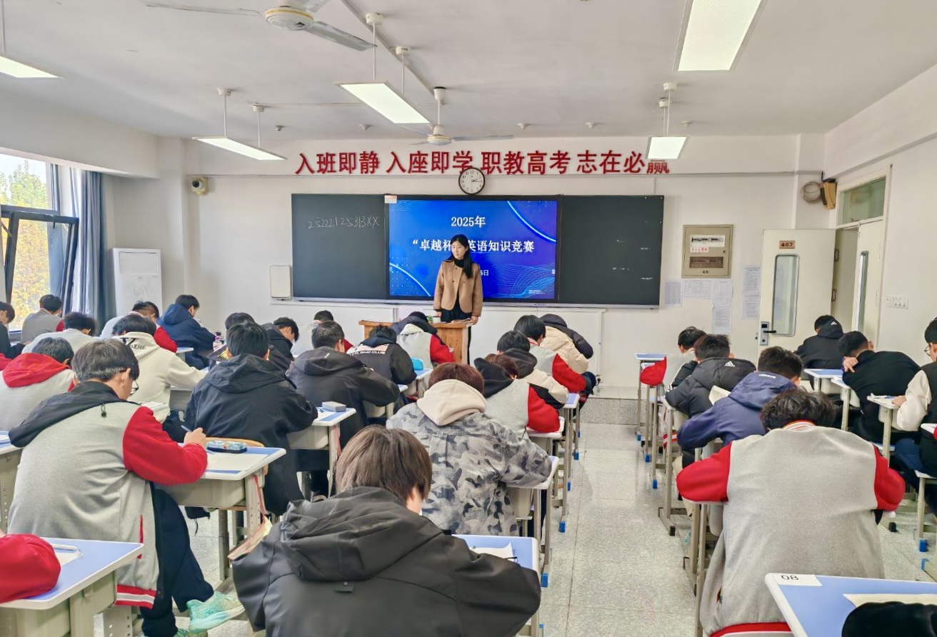 语文“言吾杯”、数学“祖冲之杯”、英语“卓越杯”文化基础课竞赛同步开赛!11月5日,学院通识教育部组织职教高考班全体同学参加了一次特殊的期中考试。这是该部创新将期中考试与学科竞赛深度融合,以“赛教一体”重构文化基础课评价体系,着力打造“以赛代考”新范式的力行之举。