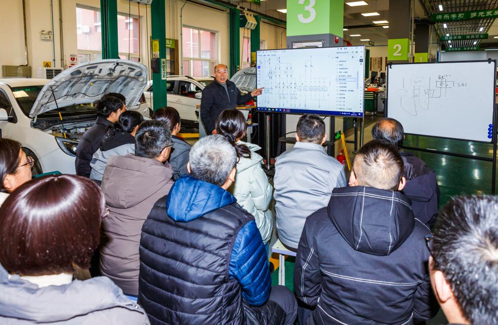 来自比亚迪汽车4S店的范老师,围绕实践课程技能点,指导教师开展了新能源汽车高压系统、驱动电机等关键部件的拆解、检测与调试,助力他们提升实践课堂教学效果,为下一步进入比亚迪汽车海洋网、淄博乾元新景文体4S店进行专业实践锻炼,打下坚实基础。