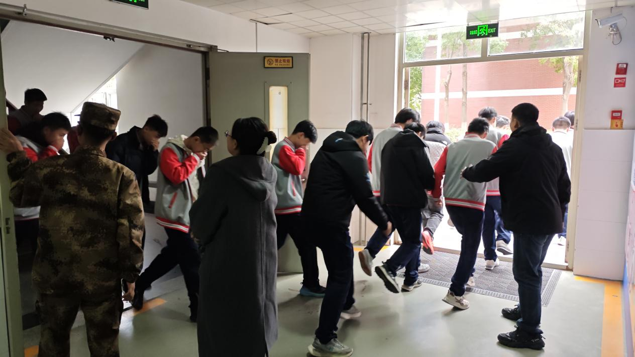 本次演练设定为学生在教室正常上课时突发火灾。演练警报响起后,在辅导员的指挥下,全体学生临危不乱,按照应急逃生路线快速有序地撤离危险区域。整个演练过程中,仅用时 2分26秒全部安全撤离到指定集合地点。