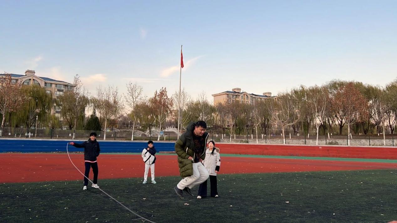 活动当天,冬日阳光洒在操场上,同学们个个摩拳擦掌,准备一展身手。单人跳绳的选手们身轻如燕,绳子在他们手中飞速旋转,仿佛一道道银色的闪电。他们跳跃的节奏明快而稳定,每一次起跳都充满了力量,在空中划出优美的弧线。
