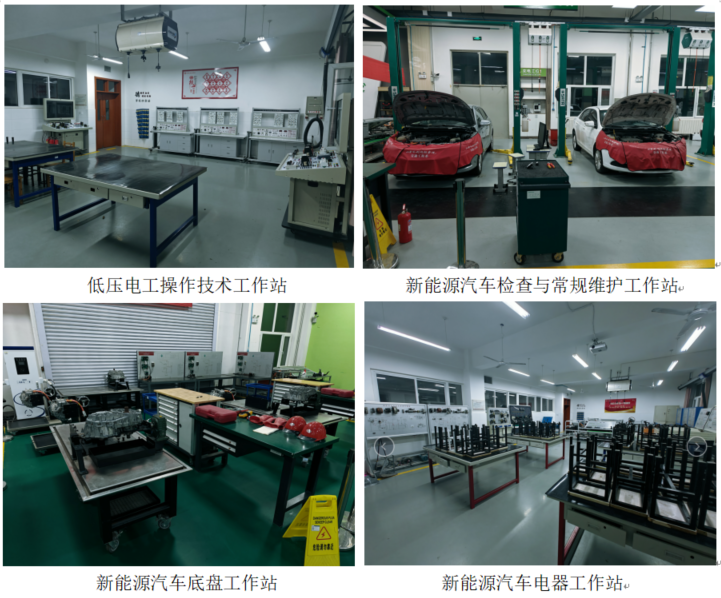 系部现拥有低压电工操作技术工作站、新能源汽车检查与常规维护工作站、新能源汽车底盘工作站、新能源汽车电器工作站、新能源汽车高压系统工作站、新能源汽车空调工作站、智能网联汽车整车实训工作站、新能源汽车整车实训工作站、新能源汽车发动机管理系统工作站、新能源汽车发动机机械工作站共10个设施先进、功能齐全的一体化工作站,教学设备先进,能够满足日常教学及实训。