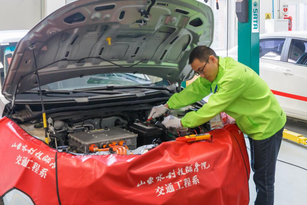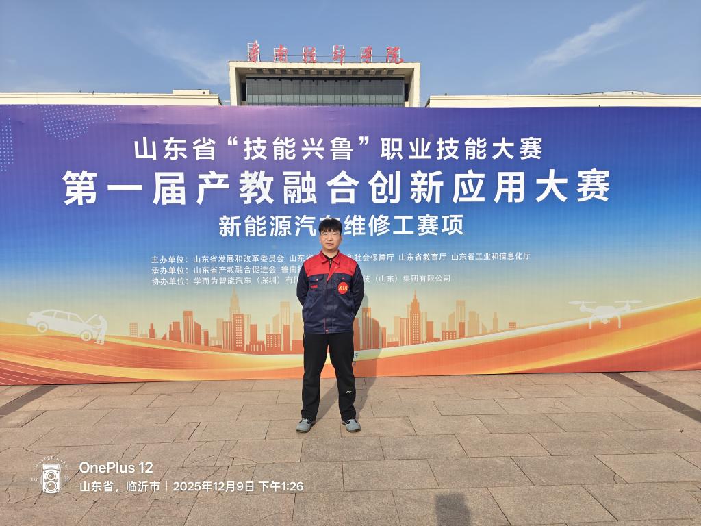 2025年孔佳豪同学在山东省“技能兴鲁”职业技能大赛--第一届产教融合创新应用大赛--新能源汽车维修工赛项中获得一等奖。