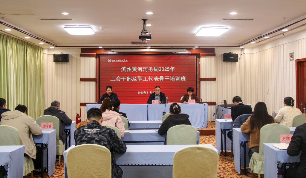 11月11日,滨州黄河河务局2025年工会干部及职工代表骨干培训班在我院开班。滨州黄河河务局党组成员、副局长王军出席开班式并作动员讲话,学院党委委员、副院长程霞代表学院致欢迎辞。