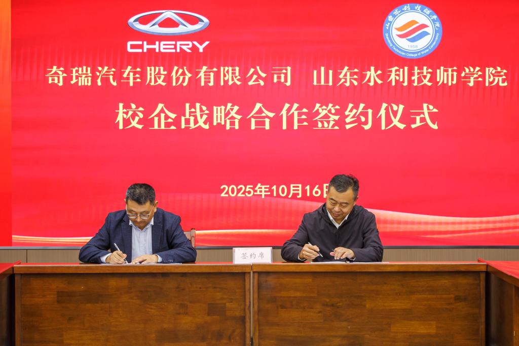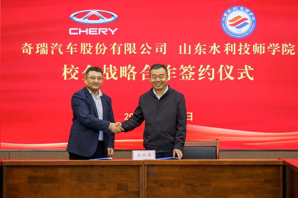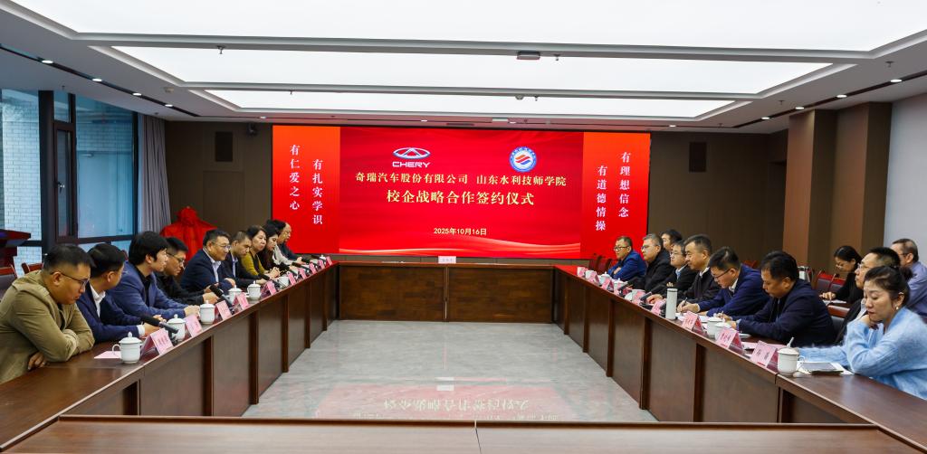 10月16日下午,学院与奇瑞汽车股份有限公司签订校企合作协议,决定共建“奇瑞汽车(淄博)产业学院”。院长边敦典、奇瑞汽车股份有限公司人事总监赵光伟出席仪式并致辞。奇瑞校企合作相关部门负责人,山东省高等教育管理科学院研究会产教融合研究院、山东省教育发展促进会教育管理专业委员会等单位有关负责同志出席仪式。