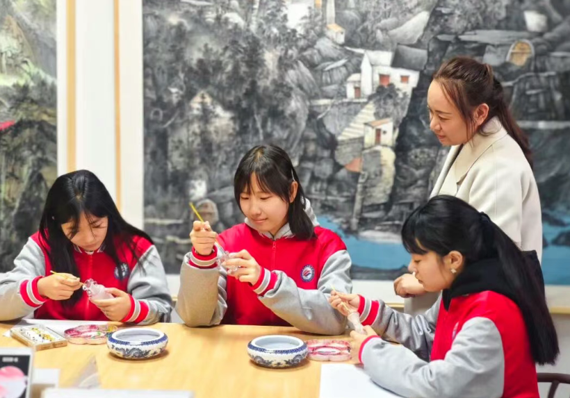 研学中,师生参观了青岭内画鼻烟壶博物馆及创作工坊,通过近距离观摩大师创作、触摸琉璃坯料、品鉴内画藏品,深入了解了鲁派内画的历史脉络与技艺精髓。“在方寸壶内展现山河意境,这种‘以小见大’的创作理念与水利匠心异曲同工。”参研学生李泽深有感触地说。