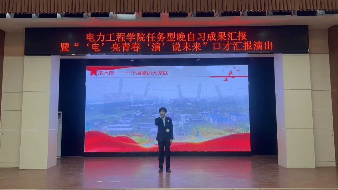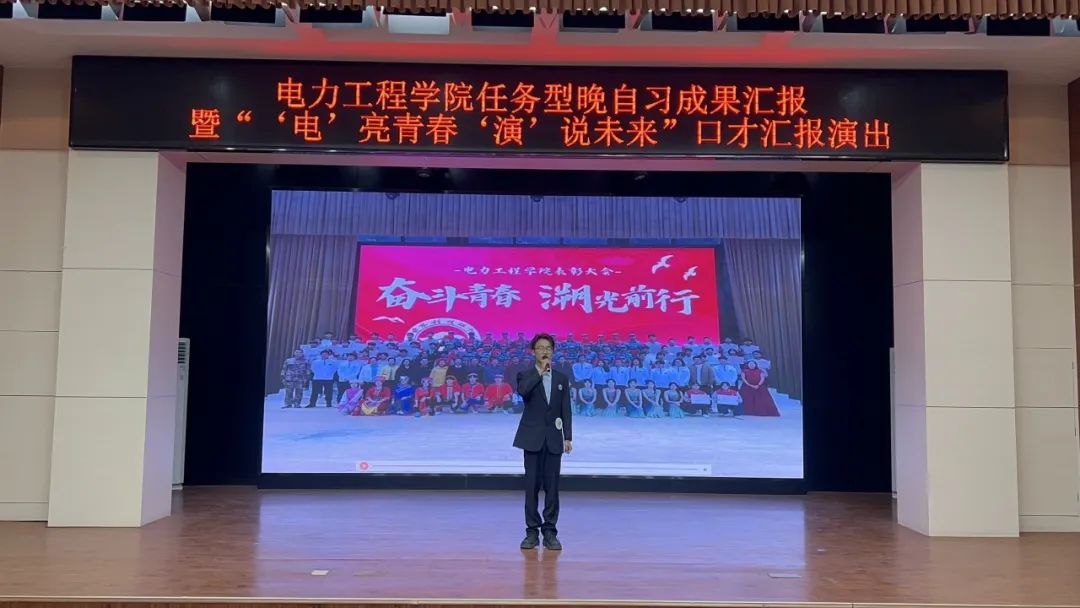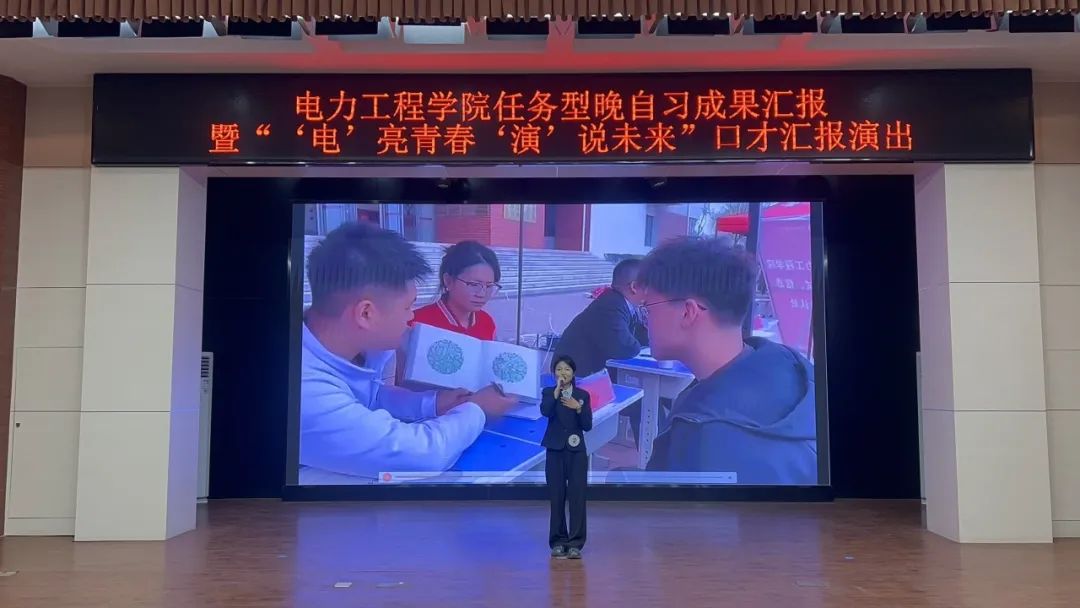 为深入推进学院任务型晚自习工作要求,全面提升学生综合素质,提升自主学习效率,将传统晚自习与特色文化活动相结合,4月22日下午,电力工程学院任务型晚自习成果汇报暨“‘电’亮青春 ‘演’说未来”口才汇报演出在学术报告厅成功举办。学院领导和各部门负责人及电力工程学院200余名师生现场见证了这一精彩时刻,线上同步直播人数达到2000余人。