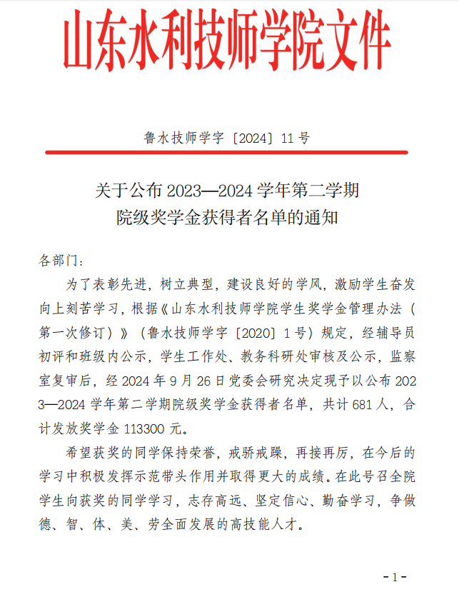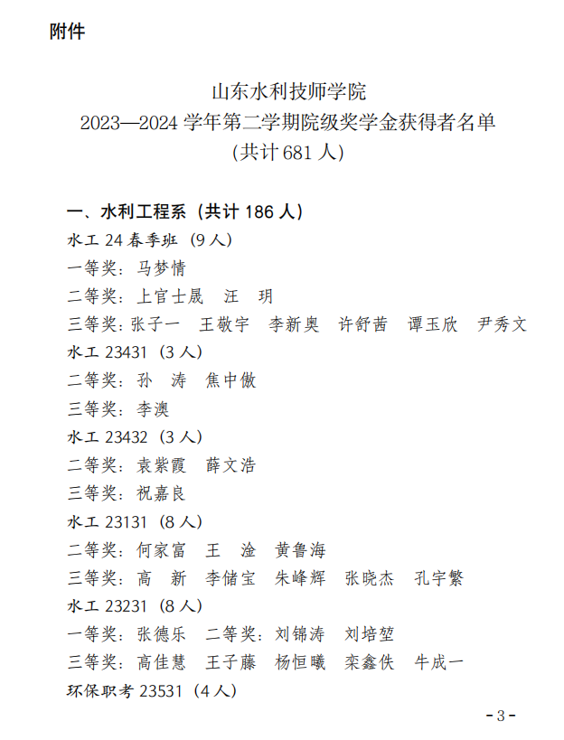 关于公布 2023—2024 学年第二学期 院级奖学金获得者名单的通知