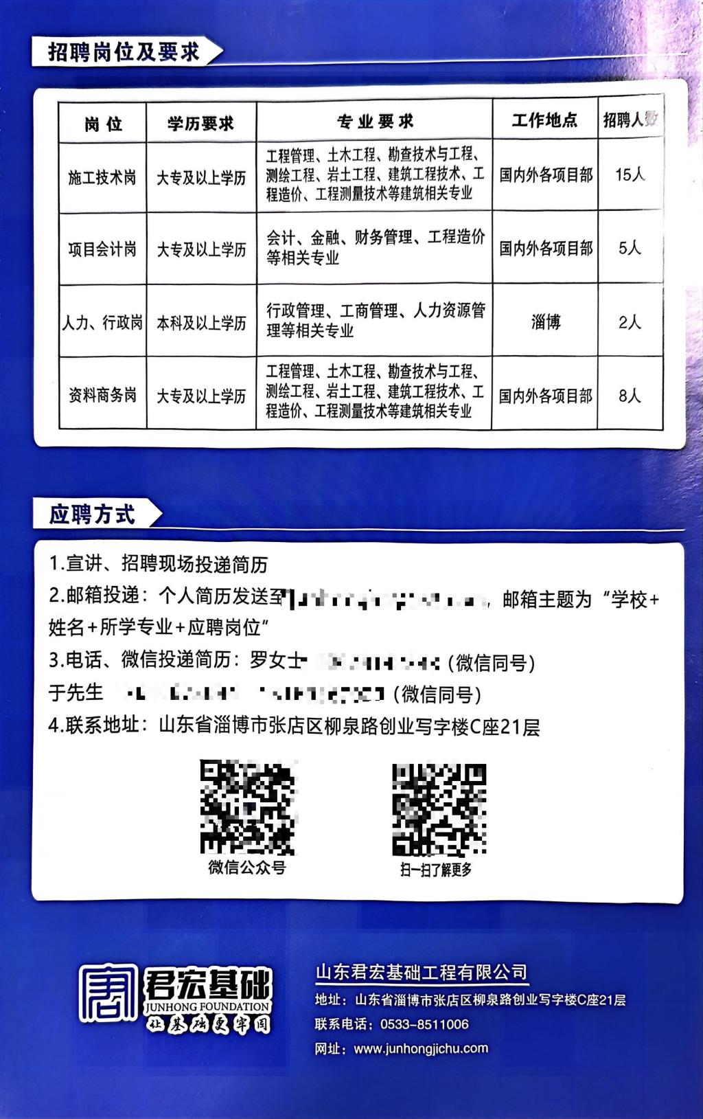 山东君宏基础工程有限公司招聘简章