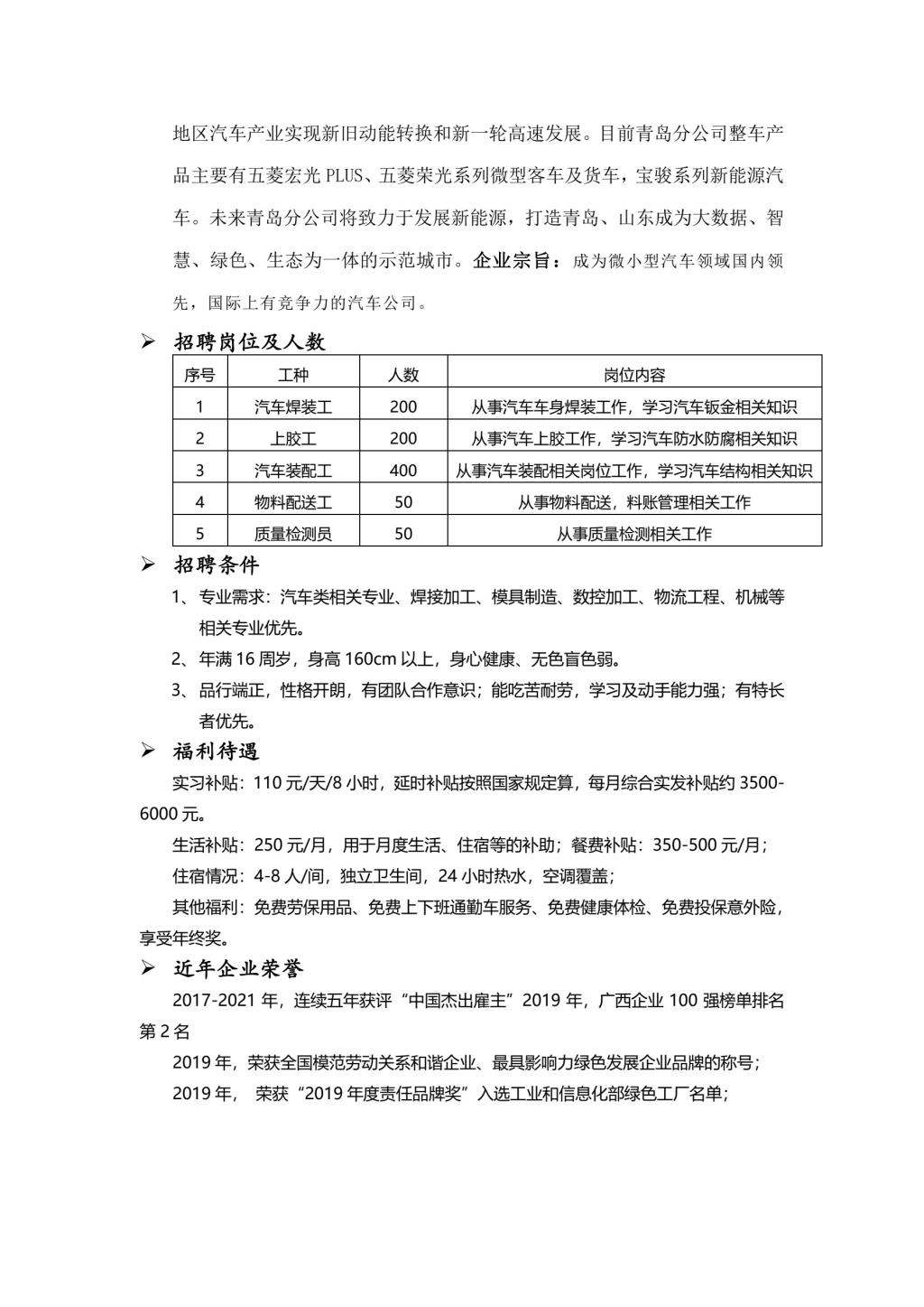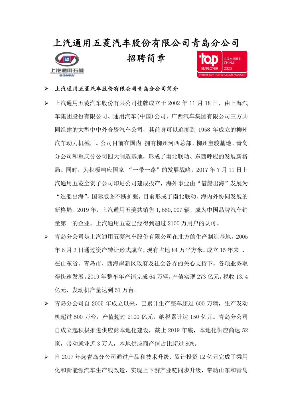 上汽通用五菱汽车股份有限公司青岛分公司招聘简章