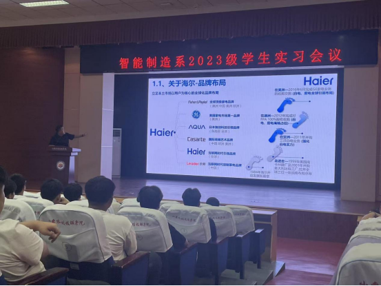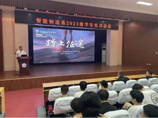 为扎实推进学生实习工作,搭建校企合作优质平台,2025年8月21日下午,智能制造系在学院报告厅隆重举行了2025年企业实习招聘宣讲会。青岛海尔特种电冰箱有限公司制造部长郭强、人事部经理穆苏等企业代表,智能制造系主任邹磊、党支部书记曹晓峰及全体实习学生共同参会。会议由党支部书记曹晓峰主持。