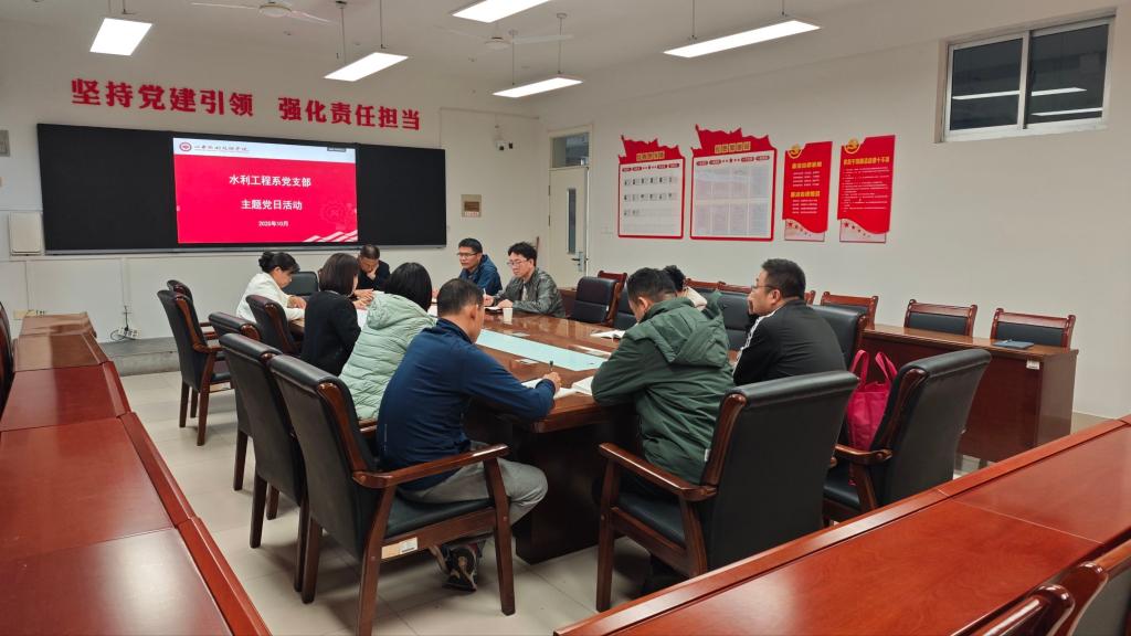 为深入贯彻落实中共淄博市委教育工作委员会关于“主题党日 + 学习贯彻党的二十届四中全会精神” 的工作部署,2025年10月31日,水利工程系党支部在树人楼101 组织开展主题党日活动,全体党员参会。
