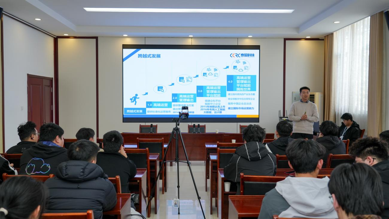 会上,泰盈科技集团股份有限公司负责人系统讲解了企业发展、业务布局及人才需求,重点推介了运营管理、项目服务类岗位,并详细介绍了企业完善的培养机制与职业发展路径,帮助学生全面了解岗位前景。