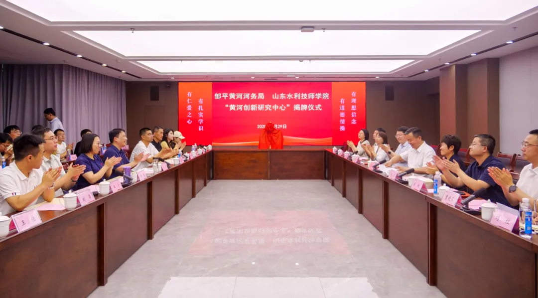 座谈会上,边敦典简要介绍了学院办学特色及与黄河河务局的合作成果。卜鹏对学院在服务地方和人才培养方面的工作给予高度评价,感谢学院对邹平黄河治理工作的大力支持。他们共同为“黄河创新研究中心”揭牌。