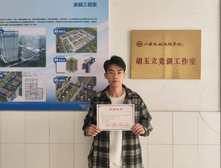 2024年获得“山东省职业学院技能大赛”水利工程制图赛项,二等奖(免试单招,入学山东水利职业学院),2024年获得国家奖学金,2024年荣获“第十六届全国水利职业院校技能大赛”“水利工程BIM建模及应用”赛项三等奖,2023年荣获“第十五届全国水利职业院校技能大赛”“工程制图”赛项三等奖。