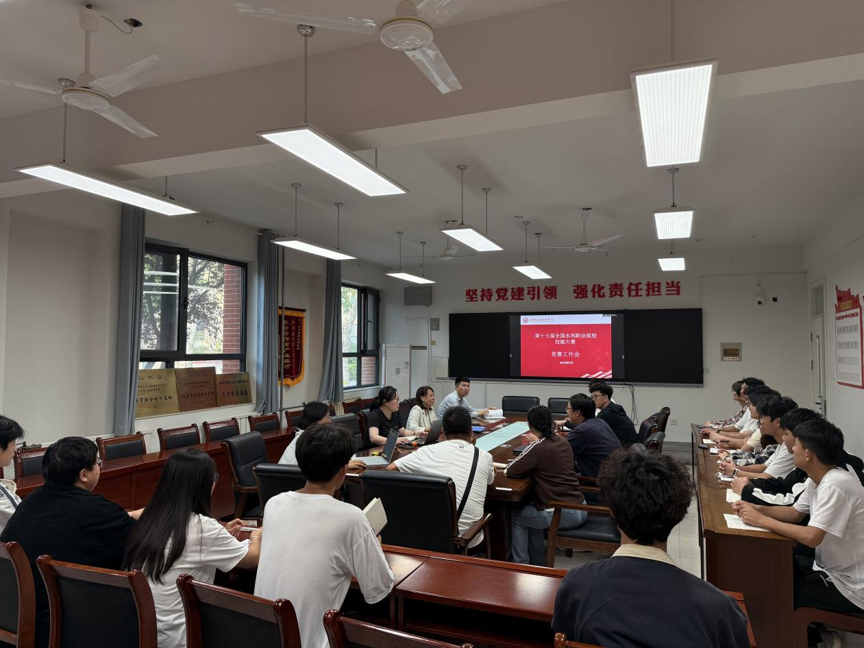 为扎实推进第十七届全国水利职业院校技能大赛备赛工作,进一步明确备赛方向、强化安全管理,9月29日下午,水利工程系专题召开赛前动员会,为即将到来的赛事冲刺阶段筑牢坚实保障,水利工程系主任尹鸿雁主持会议,各赛项指导教师及全体参赛选手参会。