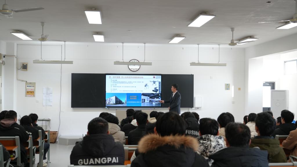 为深化产教融合,拓宽学生专业视野,引导学生把握行业发展趋势、明晰职业成长方向,2025年12月10日下午,水利工程系特邀请山东智领智能装备有限公司负责人张开浩先生到校进行无人智能装备应用专题宣讲。我系无人机应用技术、水利水电工程施工等相关专业师生现场参与,共同探寻无人装备领域的前沿动态与发展机遇。
