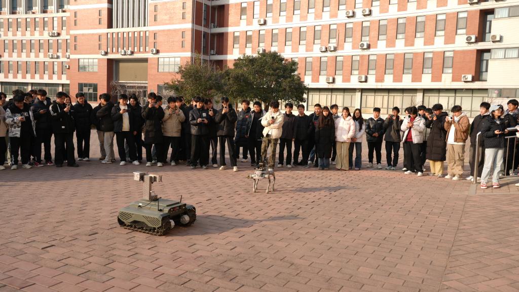 宣讲尾声,为让同学们更直观地感受无人装备的技术魅力,现场展示了无人狗等先进装备,并邀请同学们近距离观察、亲身体验操作。同学们热情高涨,积极参与互动,在实践操作中真切感受了前沿装备的性能与应用场景,进一步激发了对专业学习的兴趣与探索热情,也对未来职业发展有了更清晰的认知。