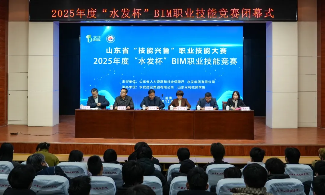 12月11日-12日,山东省“技能兴鲁”职业技能大赛2025年度“水发杯”BIM职业技能竞赛决赛在学院举办。水发建设集团有限公司党委委员、副总经理、工会主席李桂森,学院党委委员、副院长程霞出席闭幕式。