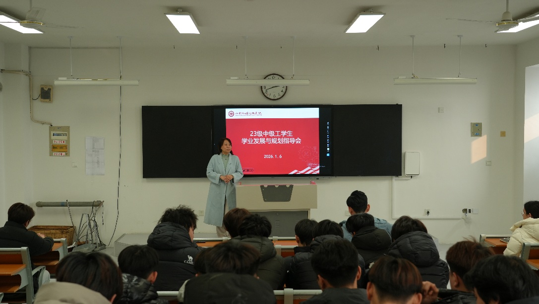 2026年1月6日,水利工程系召开2023级中级工学生学业发展与规划指导会。会议由水利工程系副主任王敏主持,系主任尹鸿雁、2023级各教学班主任及辅导员悉数参会。