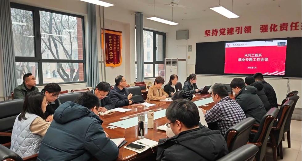 为深入贯彻落实学院关于毕业生就业工作的决策部署,进一步推进毕业生实习与就业创业工作高质量开展,1月16日,水利工程系组织召开2026届毕业生实习暨就业创业工作会议。学院党委书记万斌、副院长程霞出席会议,办公室主任李克江、水利工程系全体教师参会。
