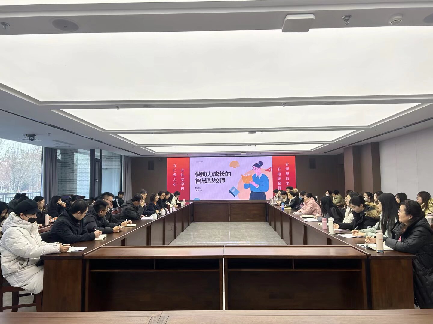 杨凤花的讲座以《做助力学生成长的智慧型教师》为题,结合自身丰富的教育教学经验与深刻感悟展开生动的分享。她以习近平总书记关于好老师的重要论述开篇,引发全体教师对教育初心的深刻思考,引导教师在回望与审视中坚守教育使命;从“我是谁我在哪”“我要做什么”“我该如何做”三个维度,为教师们搭建了清晰的职业成长框架;结合词汇教学游戏、班级凝聚力活动等具体案例,详细拆解了智慧教育的实操方法,强调教育要“修复而不是二次伤害”,让在场教师深受启发,学到了可直接应用于教学实践的宝贵经验。