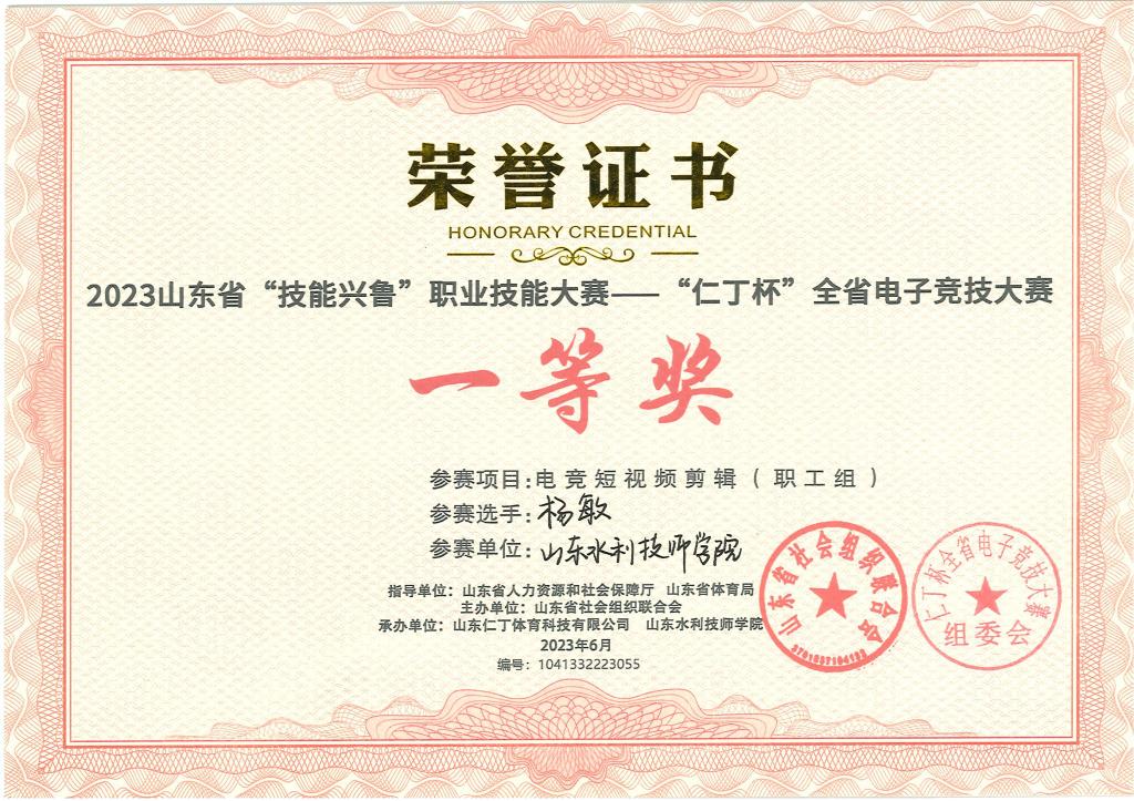在2023年山东省“技能兴鲁”职业技能大赛“仁丁杯”技术技能竞赛中,学生高佳琪、董乐雨分别获得平面设计、视频剪辑赛项一等奖、三等奖;教师杨敏,于鑫别获得剪辑赛项一等奖和二等奖。