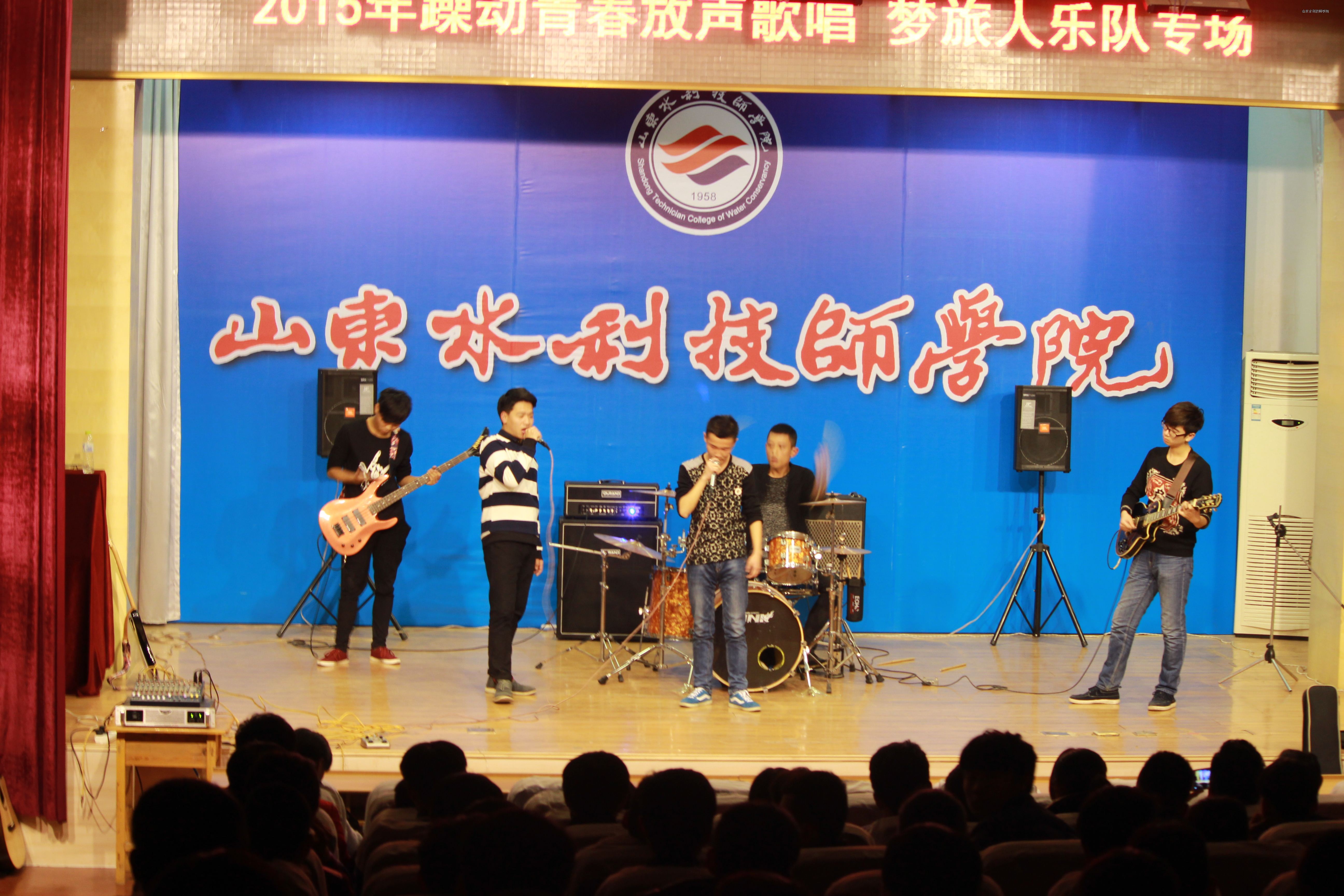 2015年11月17日晚,以“躁动青春 放声歌唱”为主题的梦旅人电声乐队兴趣小组专场演出在我院行政楼二楼学术报告厅成功举办。本次演出由梦旅人乐队兴趣小组主办,我院“晨曦吉他打击乐社团”、琼雅百花社和淄博师范专“岛与乐队”友情出演。全院近四百多名同学观看了精彩的演出。