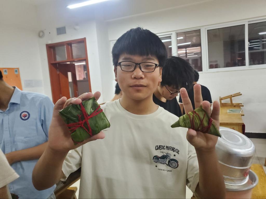 捋粽叶、装糯米、压紧实、封口,青绿色的粽叶在一双双的巧手下,变成一个个小巧玲珑的粽子。各系辅导员老师带领同学们动手包粽子,活动现场弥漫着粽叶香,老师和学生们围在一起,交流着包粽子的经验和技巧,聊端午习俗,欢声笑语,其乐融融。