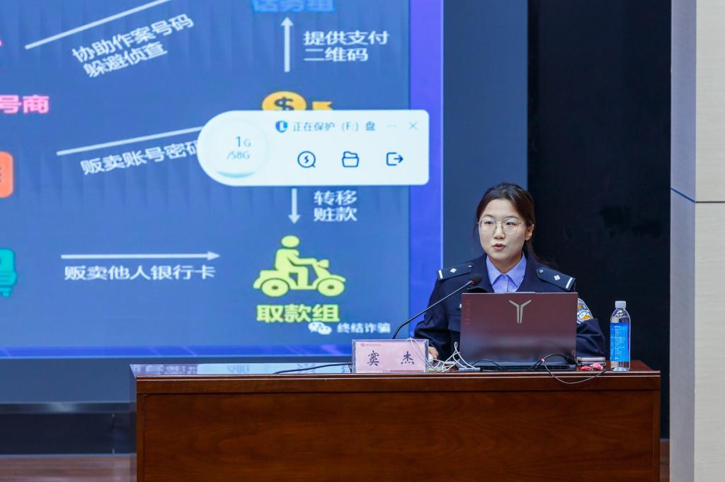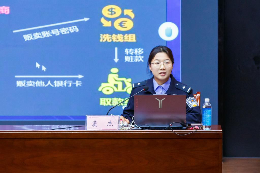 讲座中,窦杰结合真实案例,从诈骗手段的最新特点与常见类型入手,层层剖析犯罪分子的作案套路,逐步讲解识别方法与应对策略,引导同学们增强防范意识、提升辨别能力,远离诈骗。
