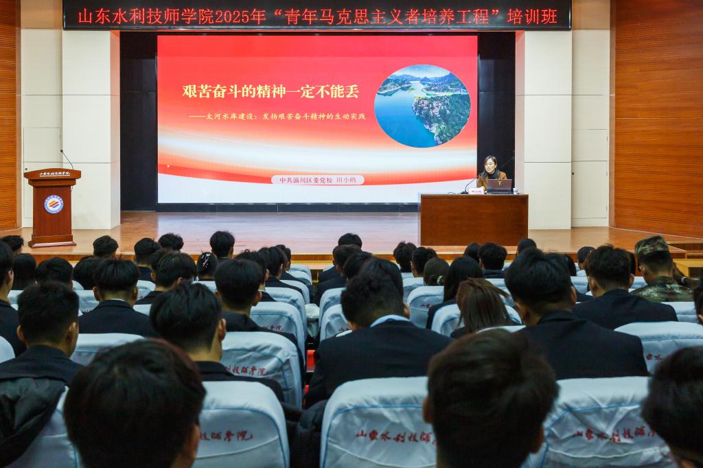 仪式结束后,淄川区委党校社会培训中心主任田小鸥以《艰苦奋斗的精神一定不能丢——以太河水库建设为例》为题,为学员们讲授开班第一课。她以身边的宏伟工程为切入点,生动讲述了太河水库建设中的感人事迹,深刻阐释了艰苦奋斗精神的时代价值,引发学员强烈共鸣。