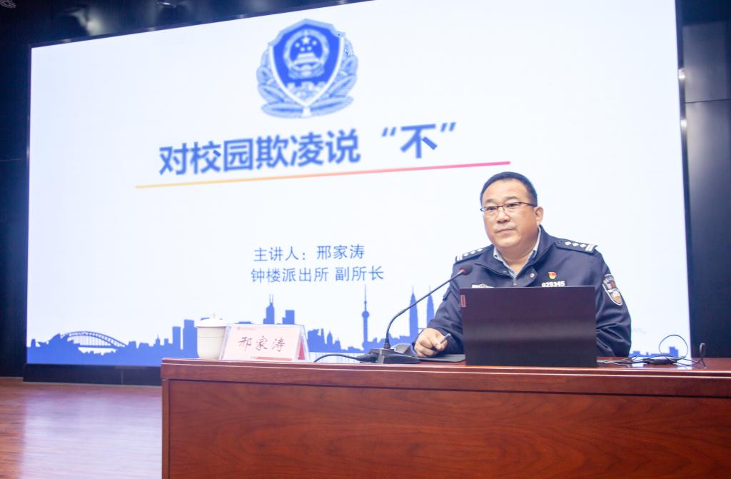 讲座中,钟楼派出所警官以《未成年人保护法》为法律依据,结合校园实际案例,深入浅出地解析了校园欺凌的五种常见形式、核心人员构成及校园欺凌的多重危害。针对如何识别欺凌苗头、遭遇欺凌后如何科学求助等关键问题,警官给出了具体可行的指导。他呼吁全体同学要树立责任意识,主动争做反欺凌“小卫士”,共同抵制校园暴力。讲座尾声,警官公布了学校报警点位置及派出所紧急联系电话,为师生安全增添双重保障。