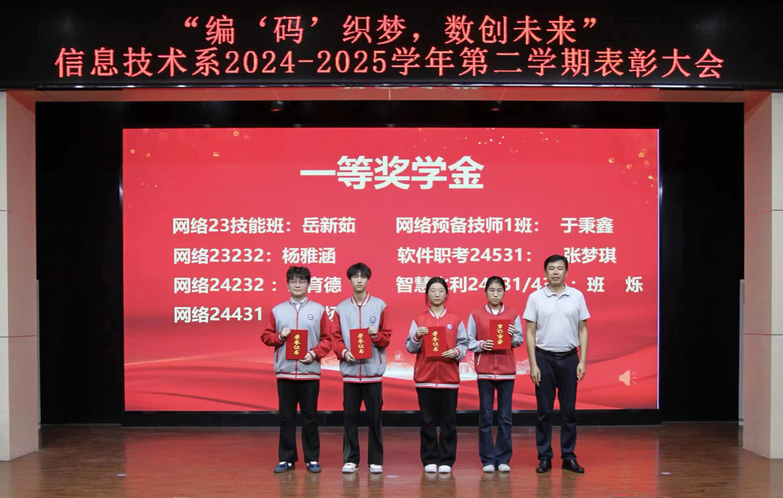 各系部表彰大会集中表彰了2024-2025学年涌现的各类优秀个人与先进集体。获奖对象包括荣获“学院奖学金”“三好学生”“优秀班干部”“优秀团员”,以及在职业技能大赛中表现优异的学生,同时也对“先进班级”“文明教室”等表现突出的集体予以嘉奖。