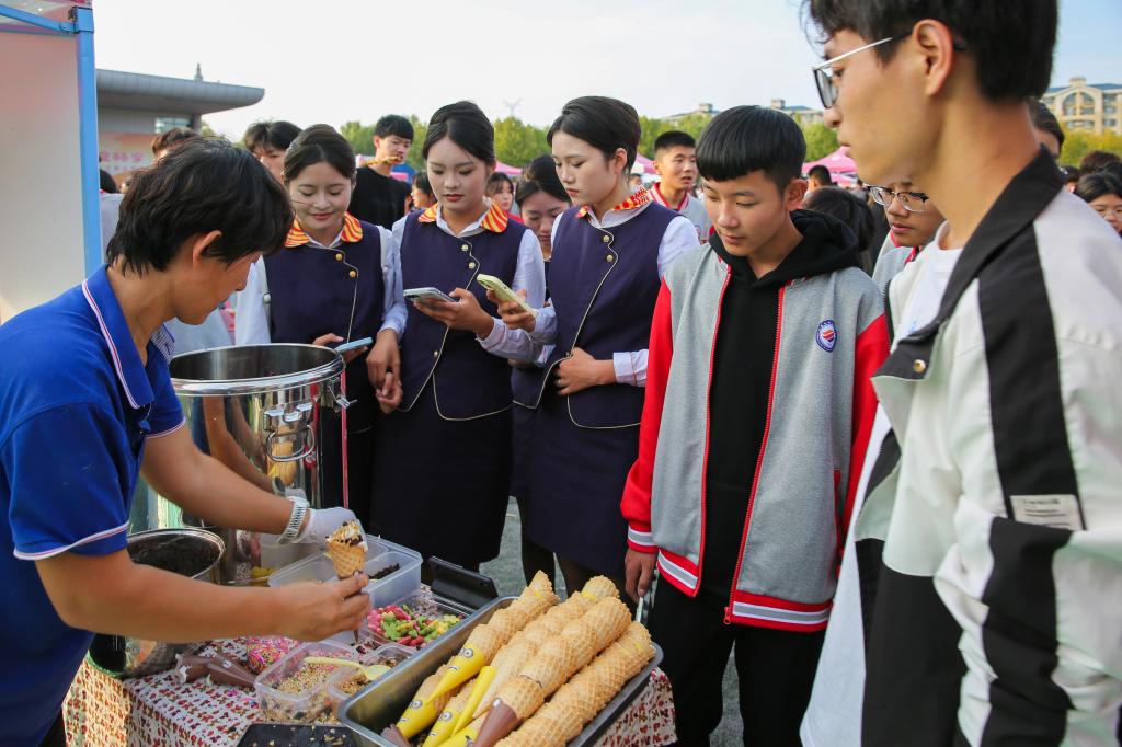 活动现场,外酥里嫩的炸鸡,一口咬下去,咔滋作响,鲜嫩的鸡肉在口中爆汁,让人欲罢不能;香气扑鼻的烤肉串,滋滋冒油,撒上一把孜然和辣椒面,那浓郁的味道瞬间征服你的味蕾。还有经典的煎饼果子,薄脆的饼皮加上丰富的配菜,一口下去,满满的都是幸福……活动现场的各个展位前,皆是人头攒动,师生耳边歌声激越,嘴里大快朵颐,香甜酸爽,唇舌生津,不亦乐乎。