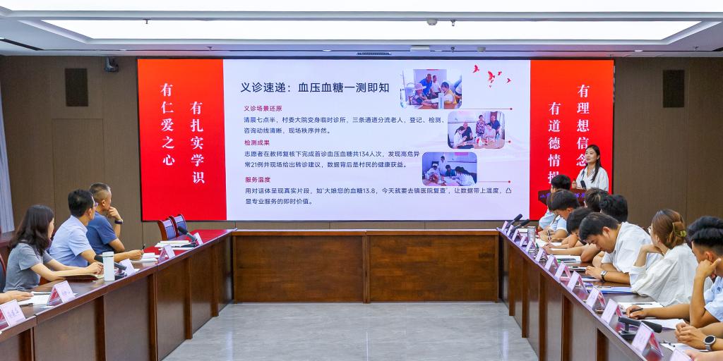 会上,全体人员共同观看了2025年暑期“三下乡”社会实践回顾视频,一帧帧生动的画面再现了同学们深入基层、服务社会的忙碌身影与真挚情感。团委就近期社会实践工作的组织与推进情况作了汇报。团队成果汇报环节,各系实践团队依次上台,结合专业特色与实践内容,展示了丰硕的实践成果。交流环节中,同学们踊跃分享实践心得,普遍表示通过实践,不仅提升了专业技能,更增强了社会责任感和团队协作能力。“真正走出了‘象牙塔’,看到了真实的社会基层”“在服务中学习,在奉献中成长”成为许多同学的共同心声。