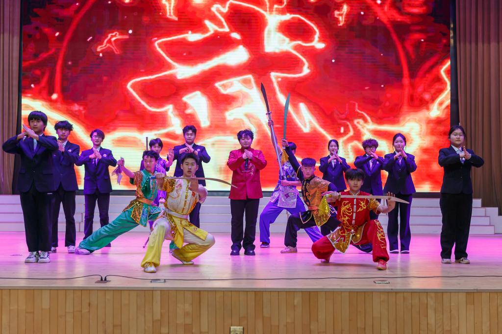 相声《校园里的文化碰撞》妙趣横生,武术表演《霍元甲》刚健有力,展现学子全面发展的精神面貌。