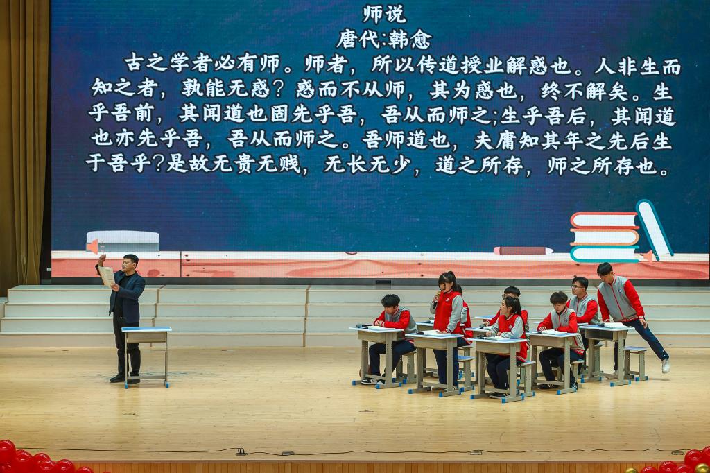 情景剧《出征》《师说》分别演绎爱国抱负与师生情谊,真挚感人。