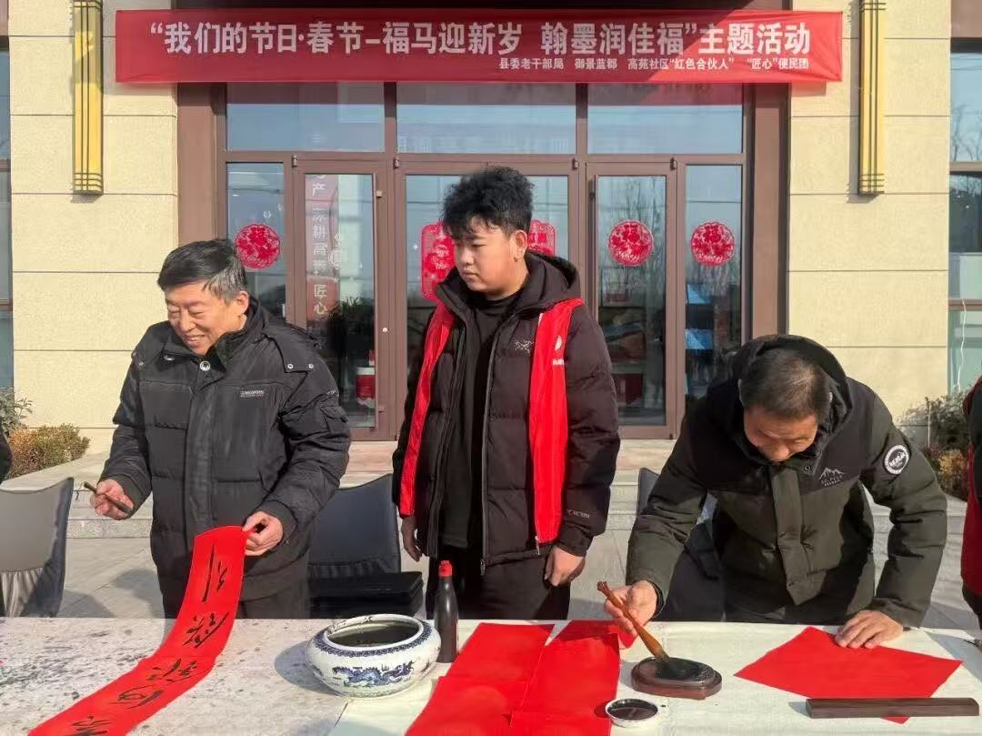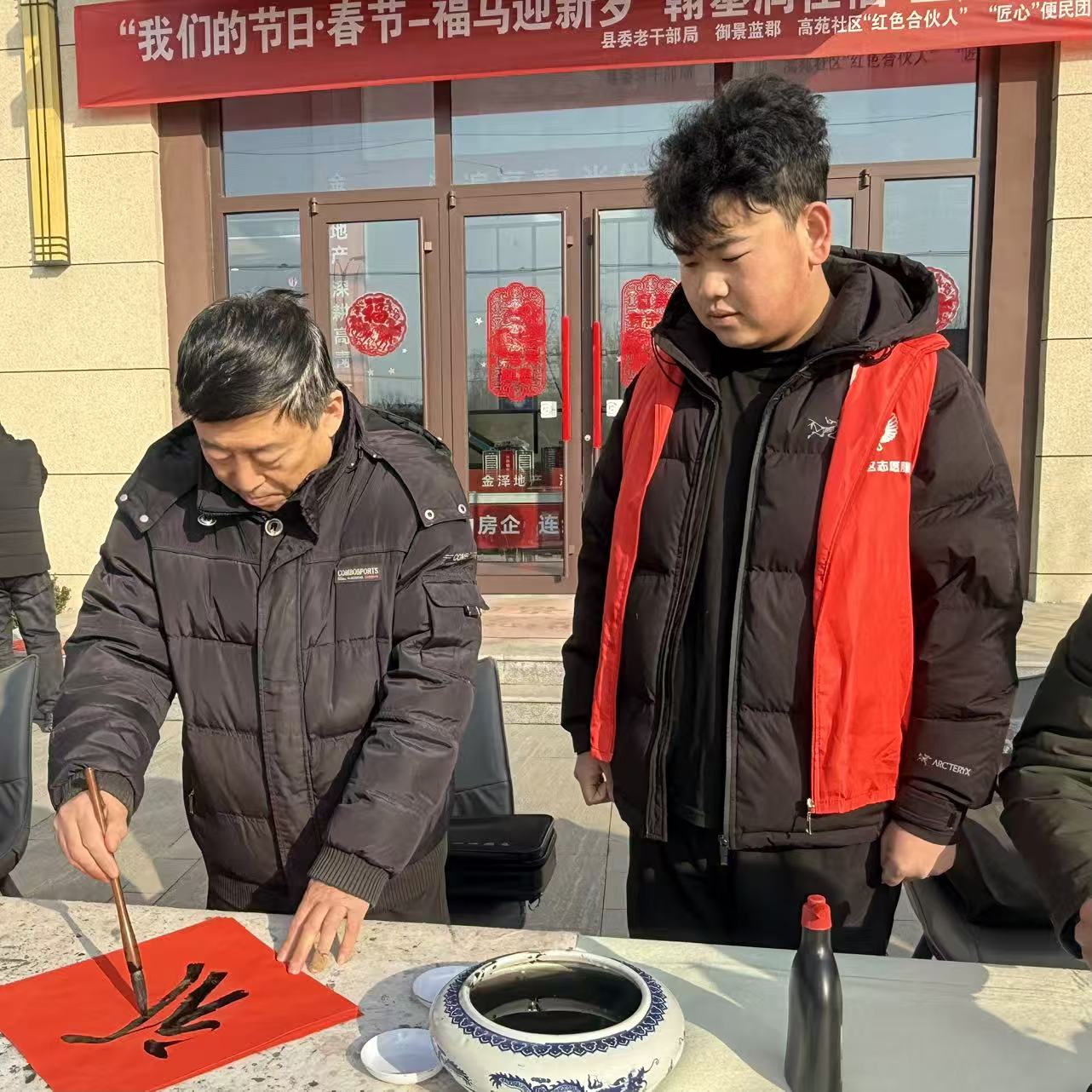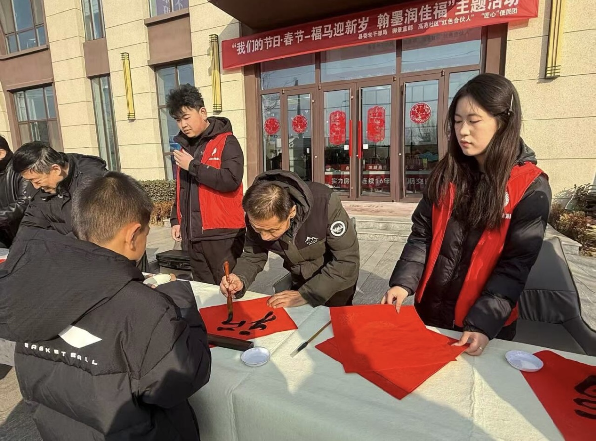 文化传承的现场,同样少不了他们的“锋”采。淄博市高青县高苑社区里,张振嘉挥毫泼墨,将一副副寓意吉祥的“福”字送到居民手中。笔墨纸砚间,传承的是年俗,传递的是温情。他的队友高诗涵也在另一个社区忙前忙后,帮着行动不便的老人把“福”气带回家,让喜庆的氛围在邻里间弥漫开来。