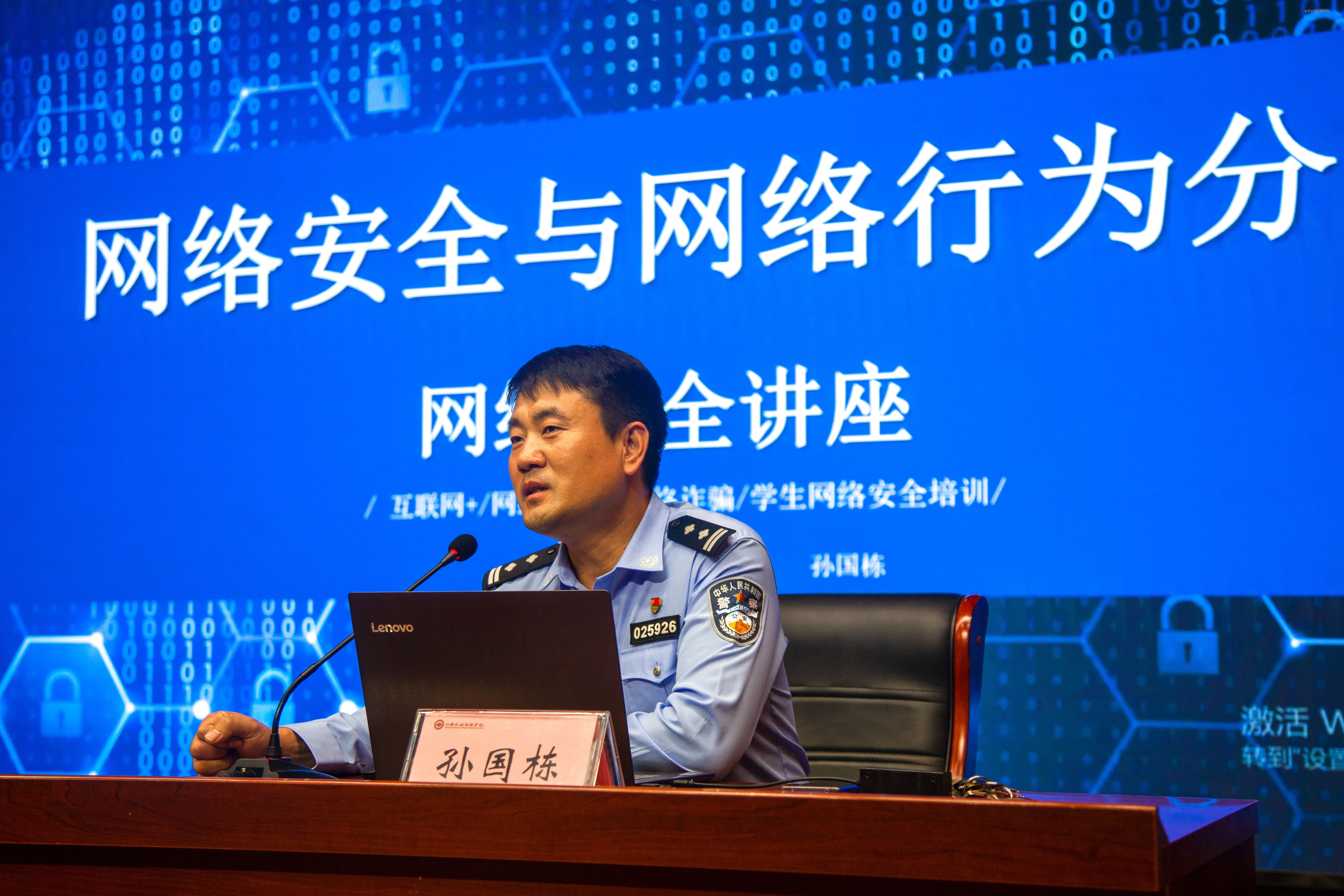 孙国栋以《网络安全与网络行为管理》为题开讲,从“网络行为安全、网络交易安全、网络交友安全”三个方面,辅以详细的案例,分析了网络安全的重要性、常见的网络安全风险及防范措施,同时还对大学生在网络安全方面应注意的问题进行了详细讲解。