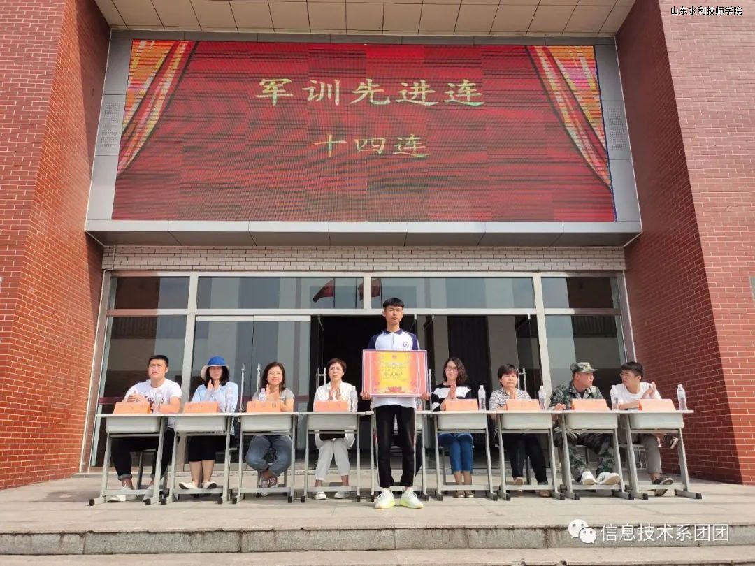 汇报表演结束后,由信息技术系李茂华老师宣布“军训先进连”“优秀教练员”“军训标兵”等荣誉称号。