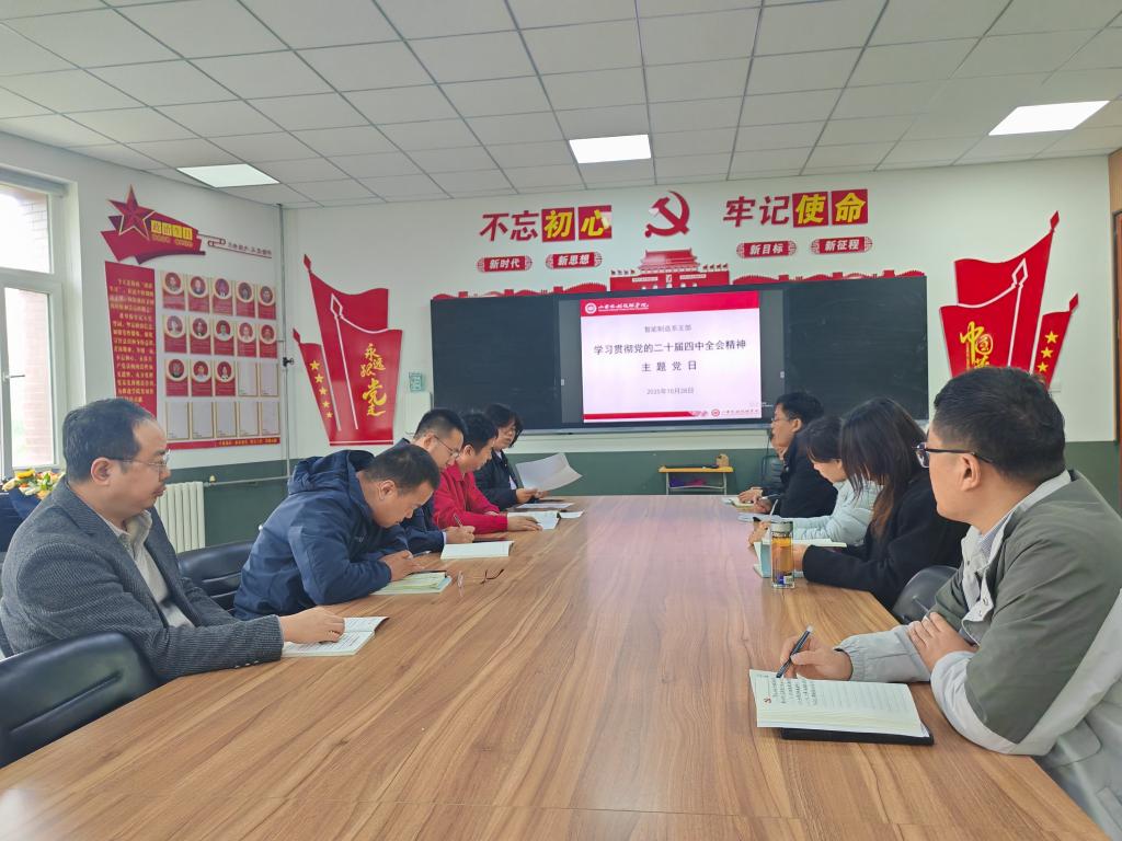 为深入学习贯彻党的二十届四中全会精神,强化党员思想理论武装与责任担当,10月28日,智能制造系党支部在德馨楼党员活动室召开主题党日会议,支部全体党员参会,会议由党支部书记曹晓峰主持。