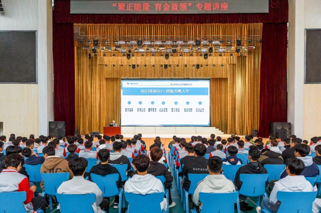周末,学院大学生活动中心内座无虚席,智能制造系“聚正能量育金蓝领”专题讲座在此举办。优秀校友、南水北调东线山东干线有限责任公司胶东管理局双王城水库管理处职工于涛,以《知识铸就匠心技能点亮人生》为题,面向1200余名学生作宣讲。